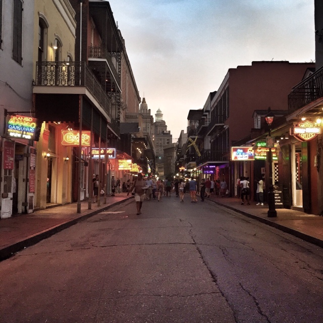 First, we ate beignets (which we could eat every day forever.)IMG_5819We walked along the Mississippi River.  We went to Siberia, a metal bar, and ate a beet burger (it was the best food we’ve eaten at a bar, ever.) We walked on Bourbon Street for one block and took this picture, then promptly exited.  IMG_5855 We rode our bikes in City Park and walked all the way from the 7th ward down to the Lower 9th to check out how far the development has come along since Katrina.  IMG_5839We ate gumbo and po’boys and even saw Uncle Dave!  We checked out the street art and found Adam’s favorite.  IMG_5815 We got to stay in a super cute, awesome house in the 7th ward and met the neighbors (the people in New Orleans are so much friendlier than anyone else- we had conversations with neighbors that lasted multiple hours).  FullSizeRender(3)We didn’t really get to see any parades (just one tiny one that was more like a bunch of people from some company walking the same way on the street than a parade).  I found out that it was because parades happen every month of the year except July when I went to the Backstreet Museum in Treme.  We definitely need to go back to New Orleans, but we’re happy to move on to the open country of West Texas.
