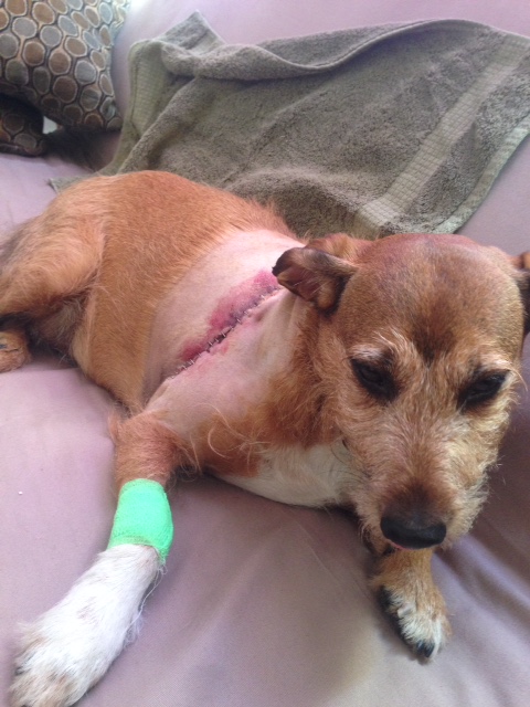Our buddy, Vera was attacked and had surgery, but maintained her status as a happy camper in Texas