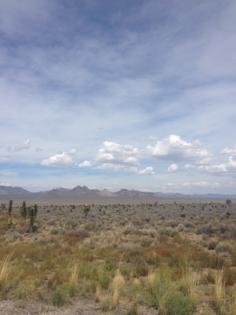 The next morning we drove across Nevada- which was, admittedly, uneventful until we spotted a group of desert big horn sheep running into the desert.  IMG_3301(We have no picture of the sheep- we were literally frozen in awe at their prettiness and only snapped a shot after they’d run far from view- but the scenery is beautiful anyhow.)